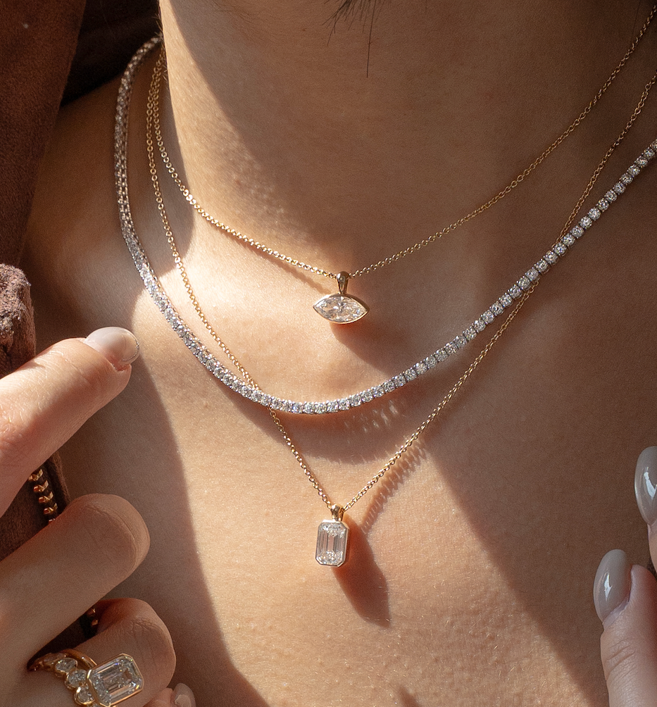 Lab-grown diamonds are identical to natural diamonds, with the only difference being how they’re made. This allows us to bring you stunning designs at prices you’ll love.