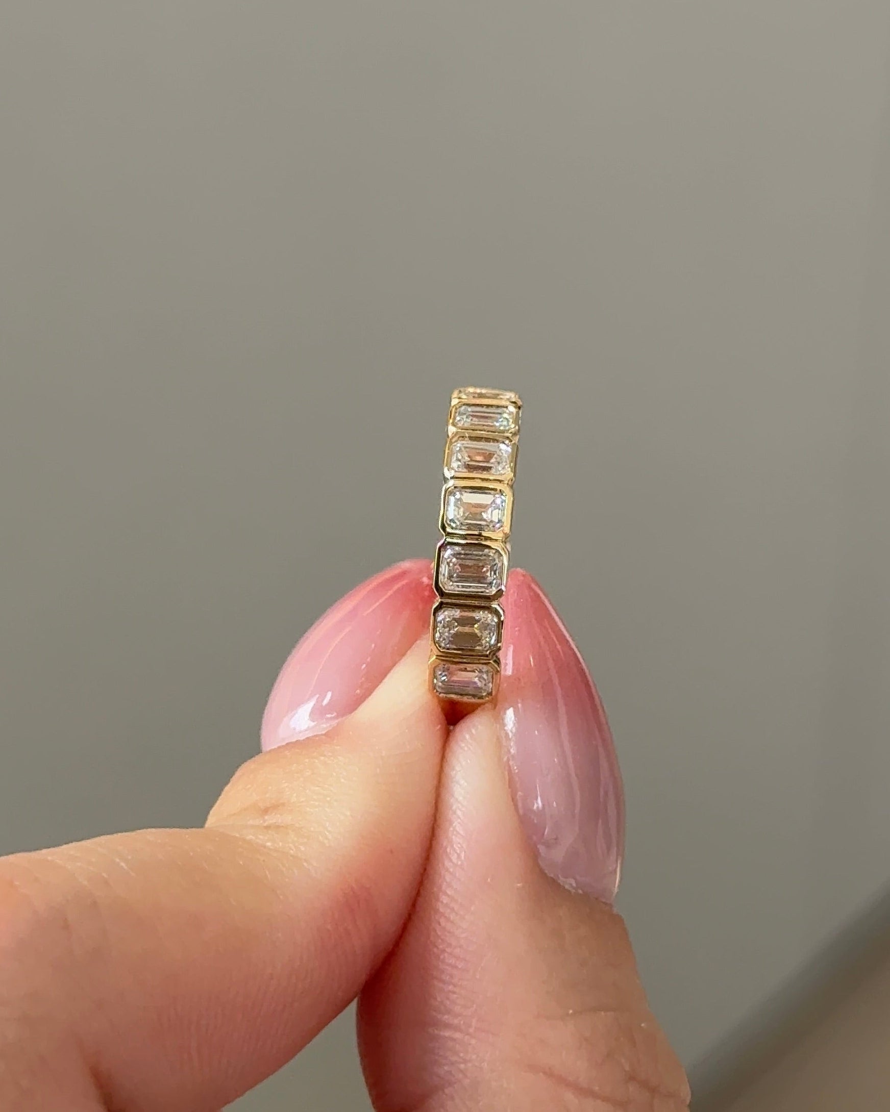 15 Pointer Emerald Cut Diamond Bezel Eternity Ring