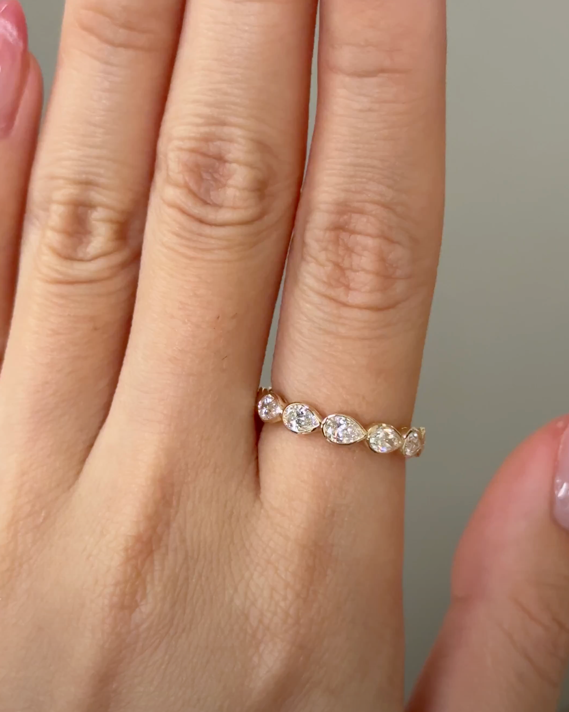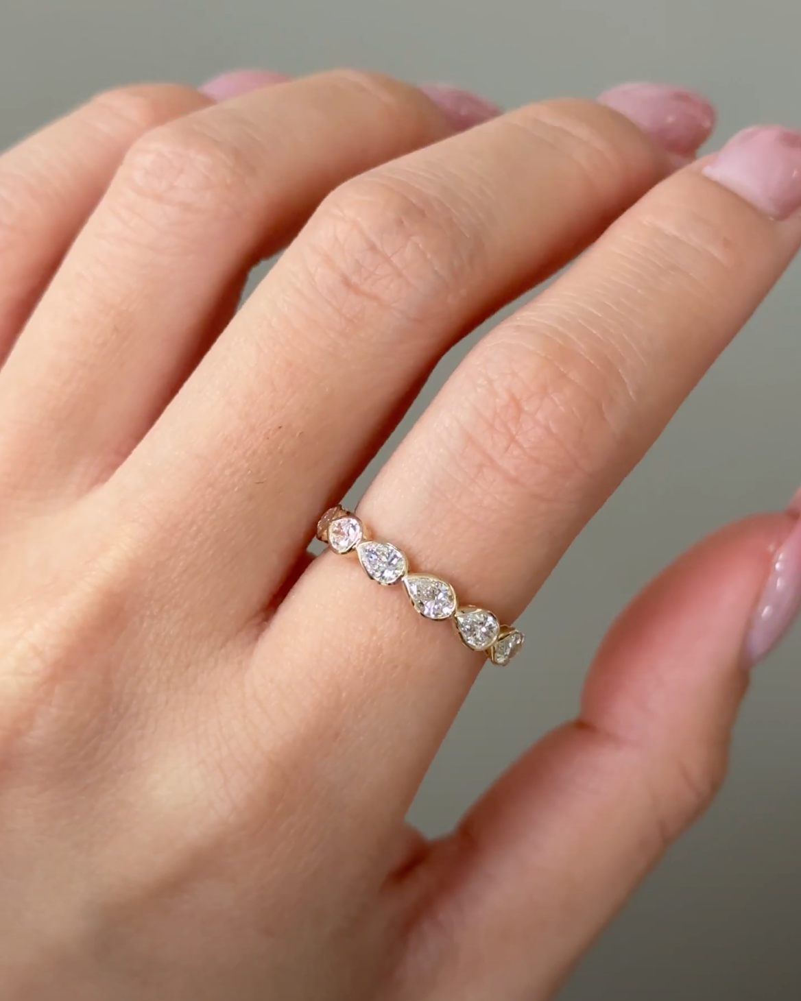 15 Pointer Pear Cut Diamond Sideway Bezel Half Eternity Ring