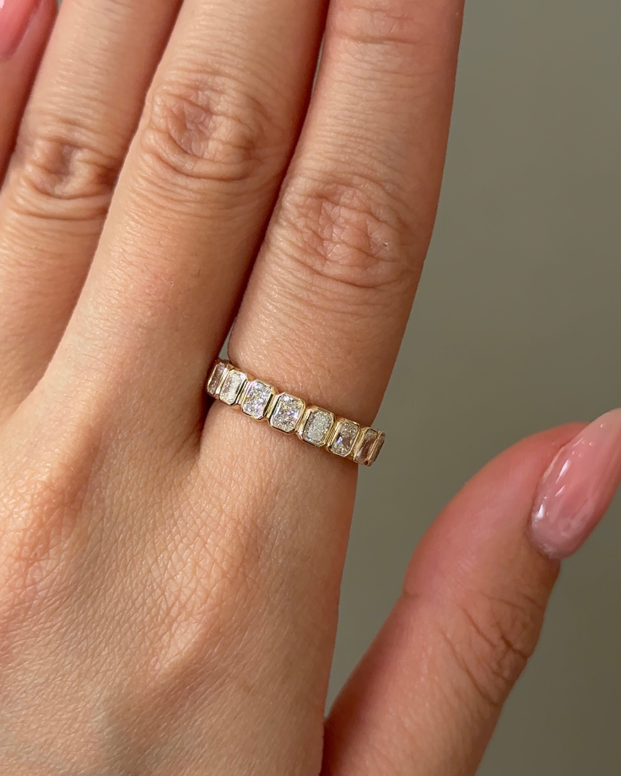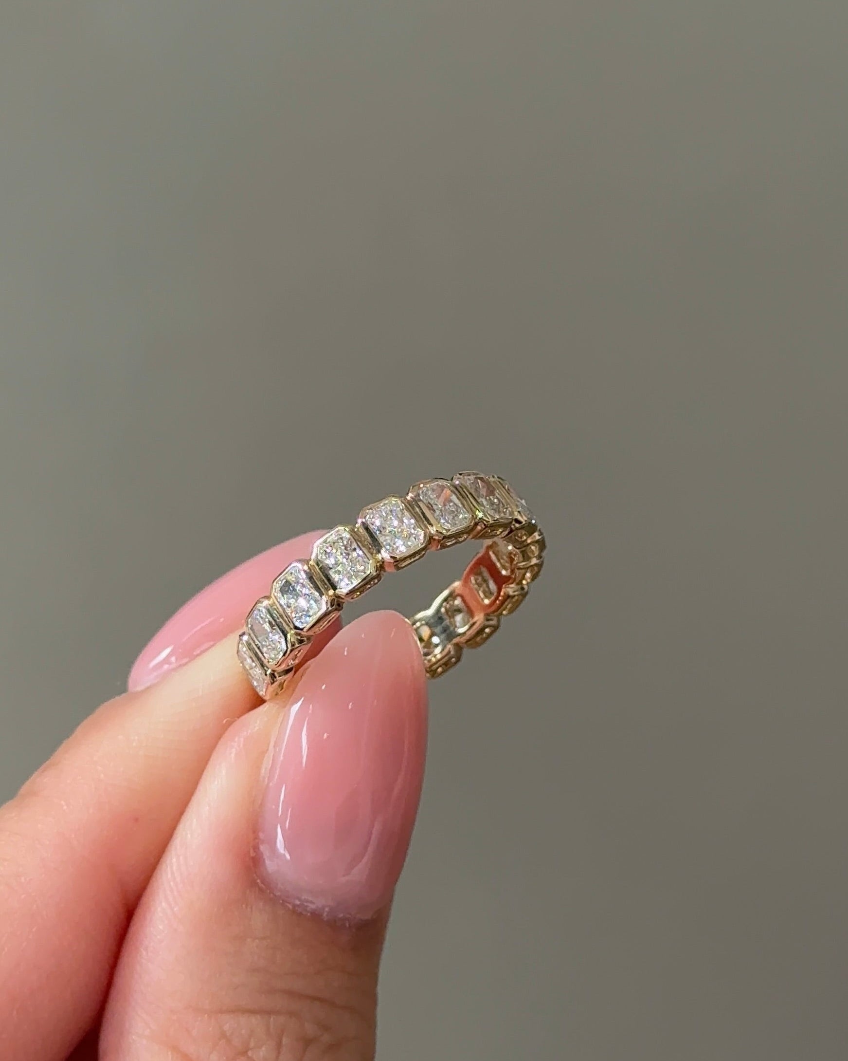 15 Pointer Radiant Cut Diamond Bezel Half Eternity Ring