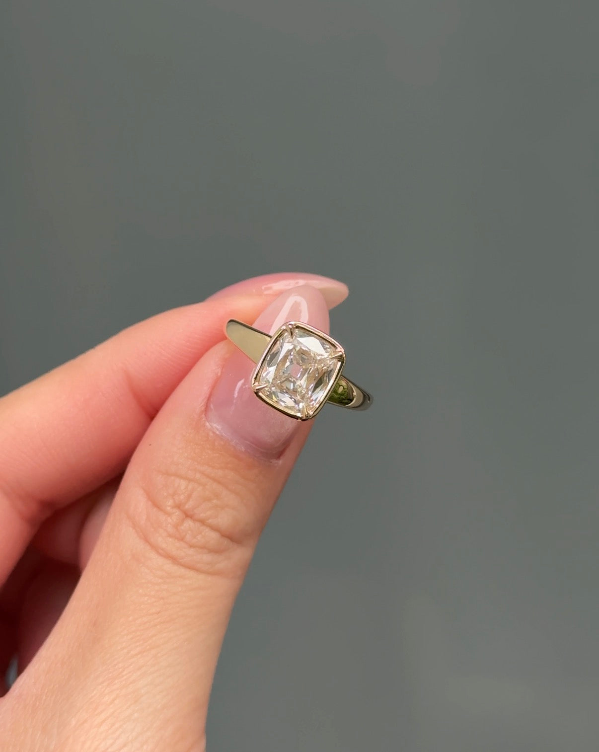 2 carats Antique Cushion Cut Diamond Bezel Ring