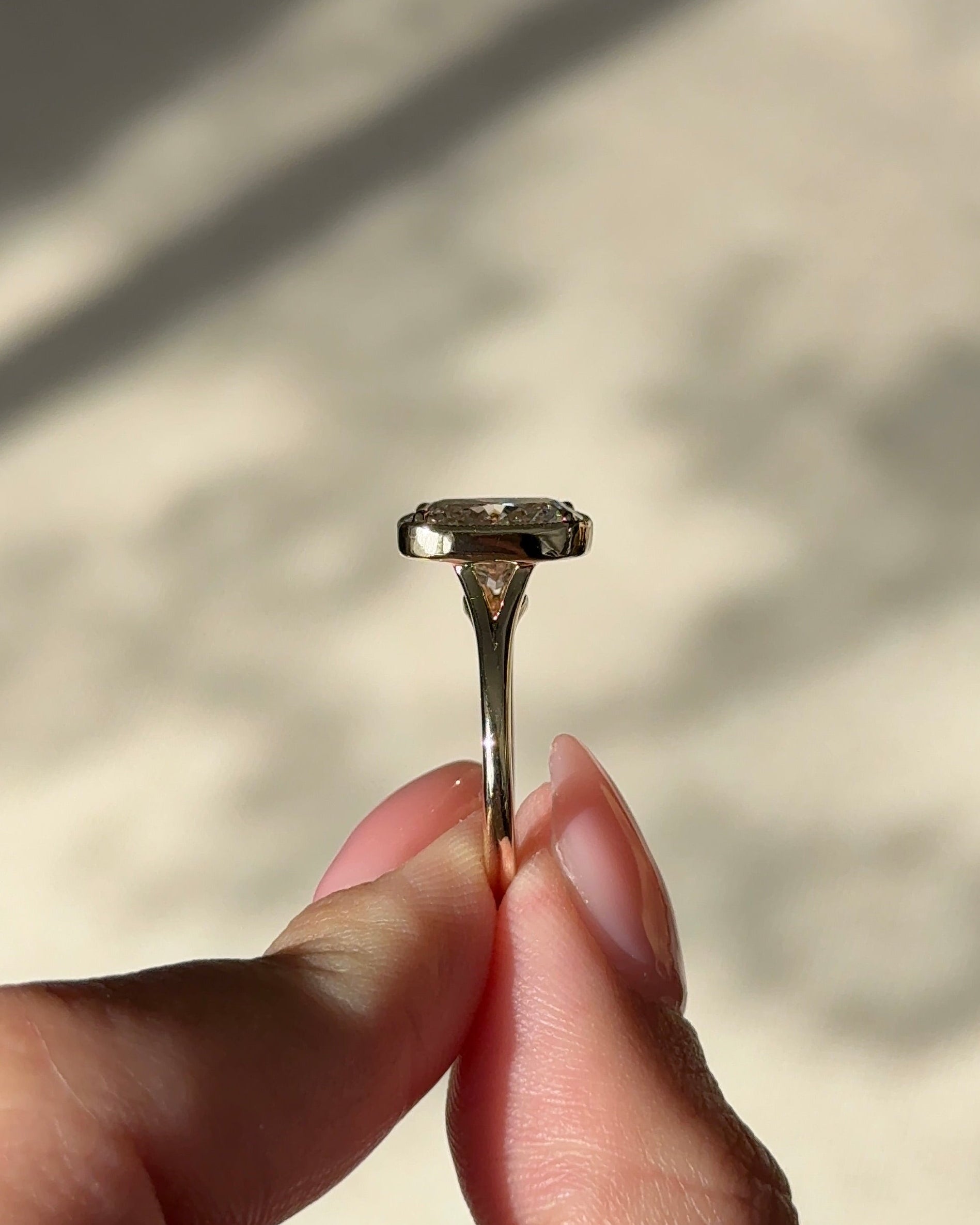 3.10 carats Elongated Cushion cut Tapered band with slim bezel ring