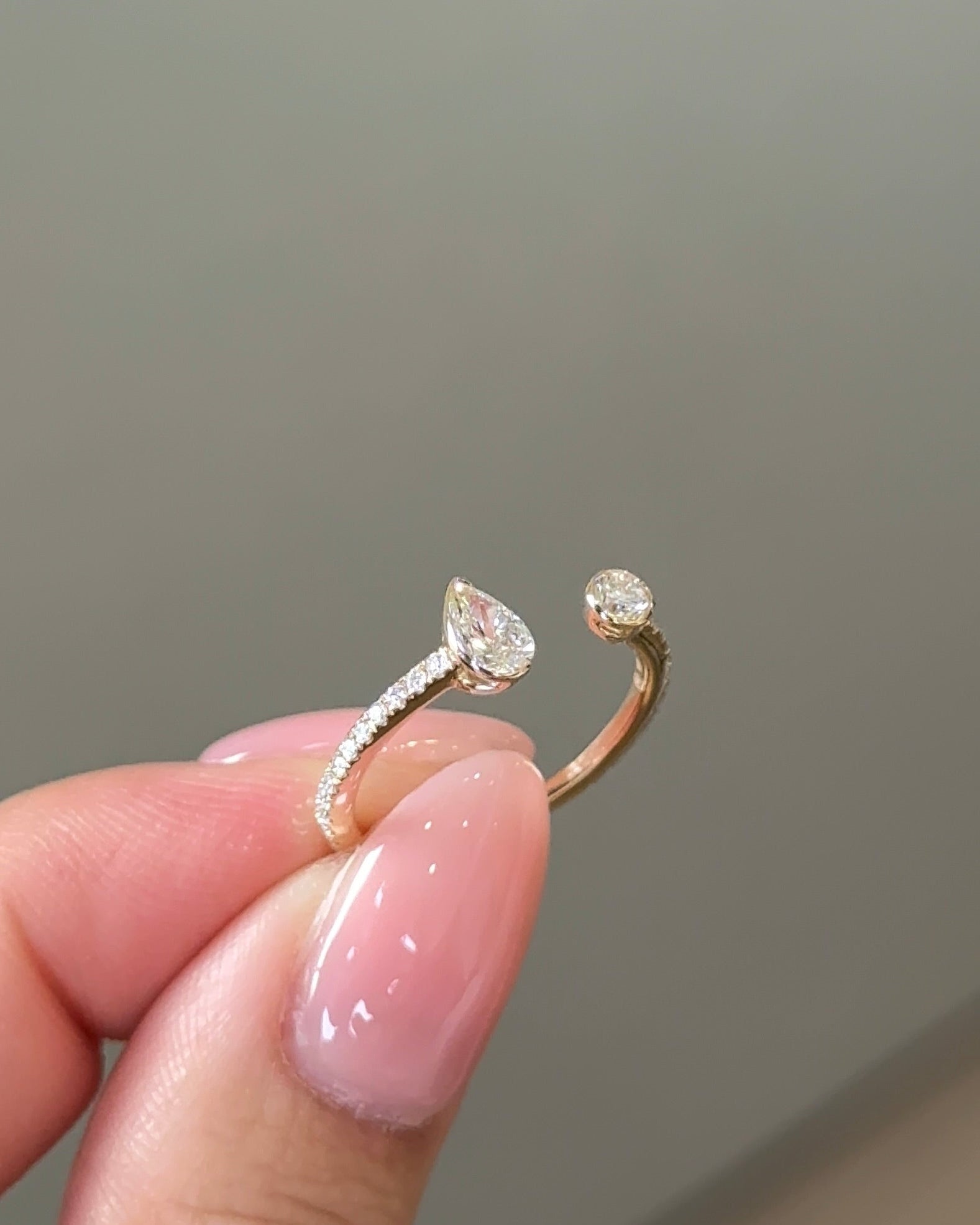 30 Pointer Pear and 10 Pointer Round cut Diamond Bezel Arc Cuff Ring