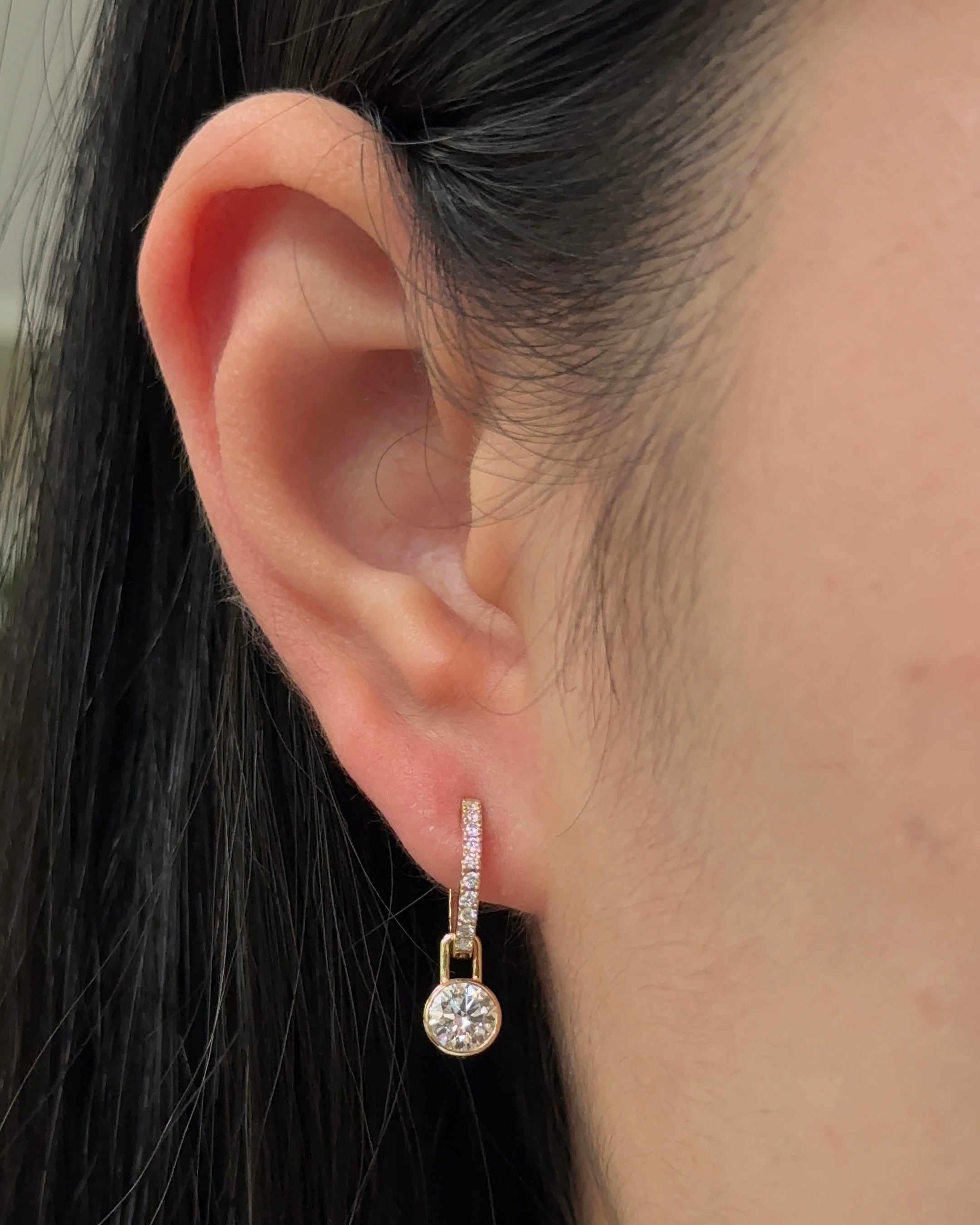 50 Pointer Round Diamond Bezel Flow Droplet with Diamond Pave Huggies Earrings