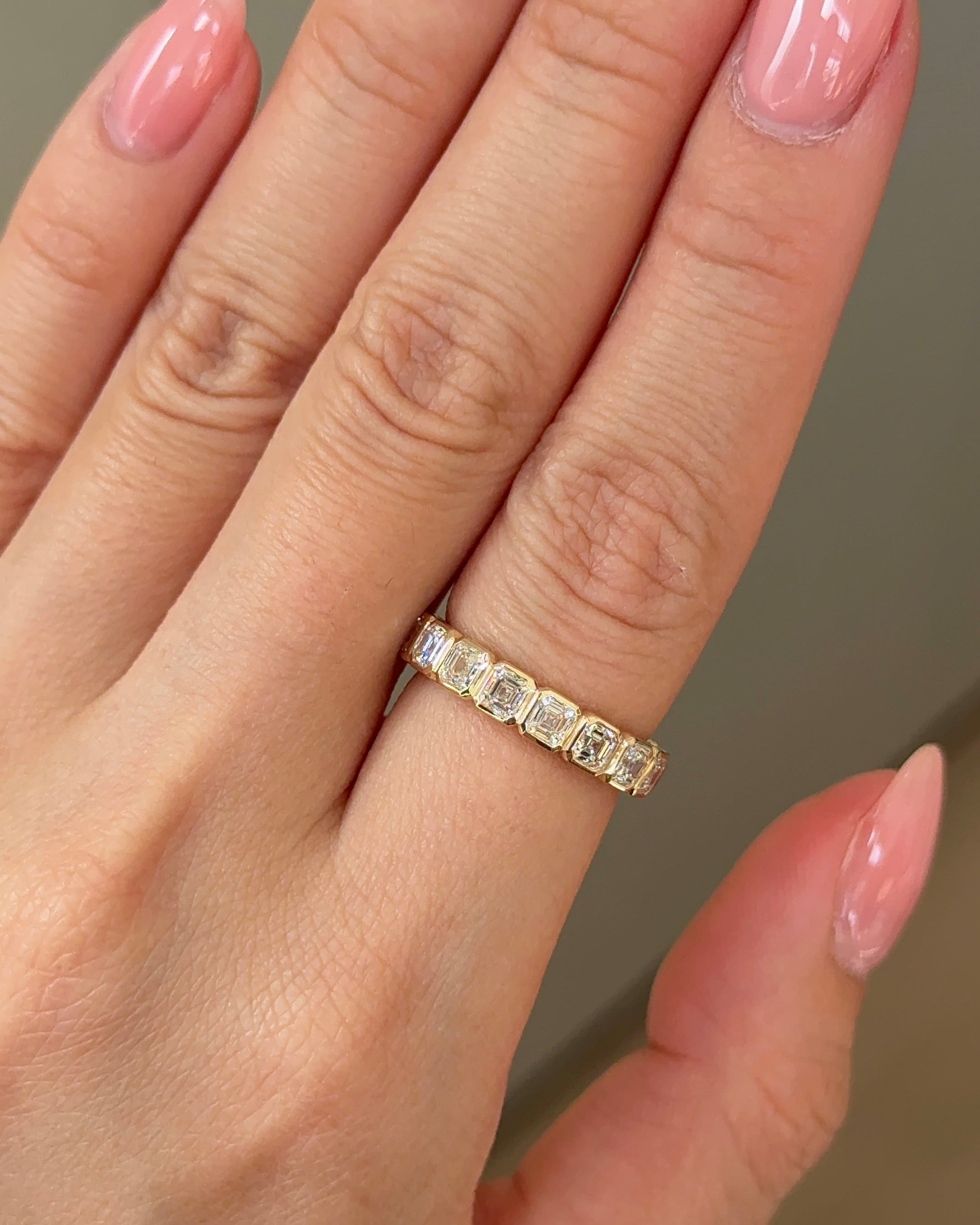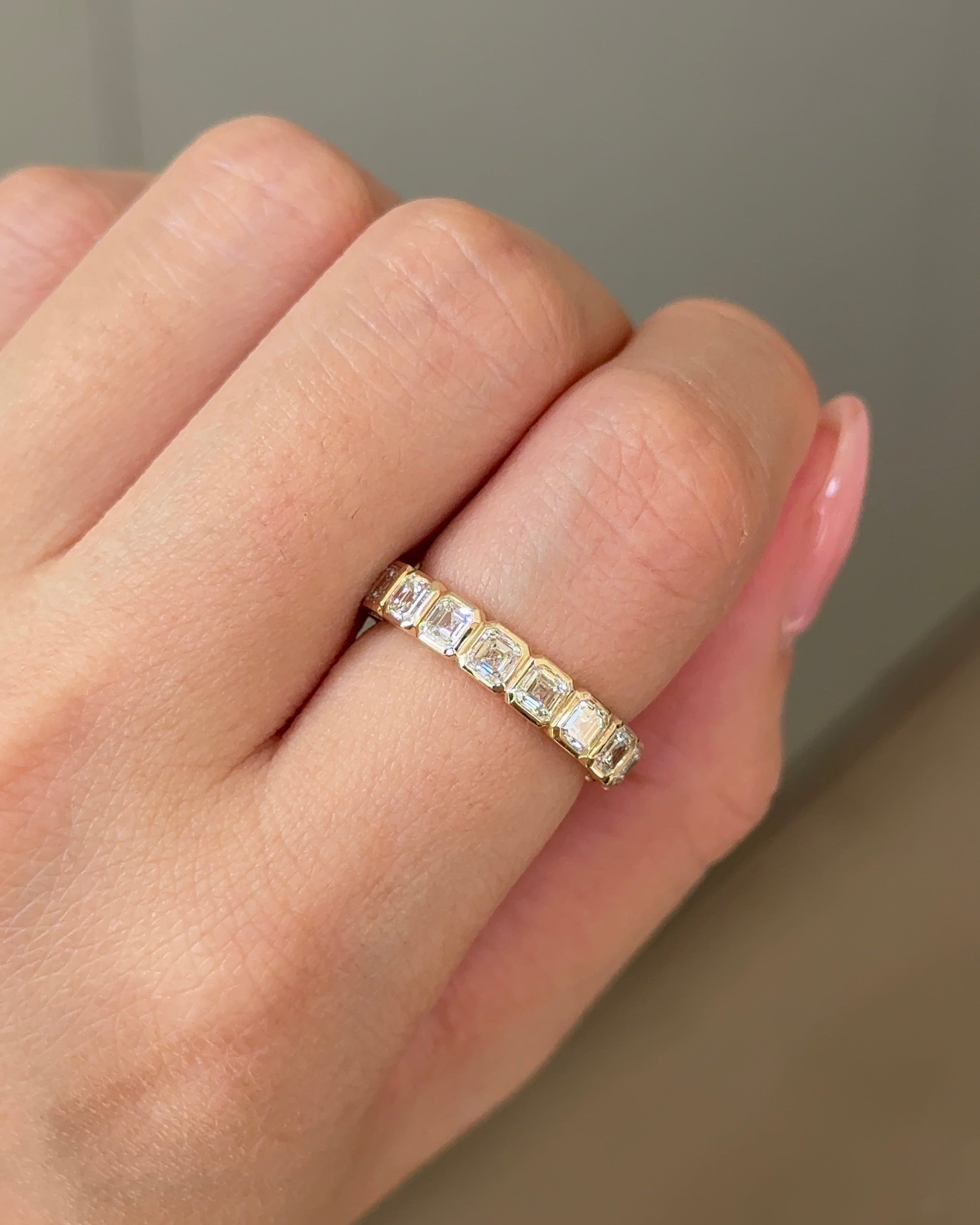 15 Pointer Asscher Cut Diamond Bezel Half Eternity Ring