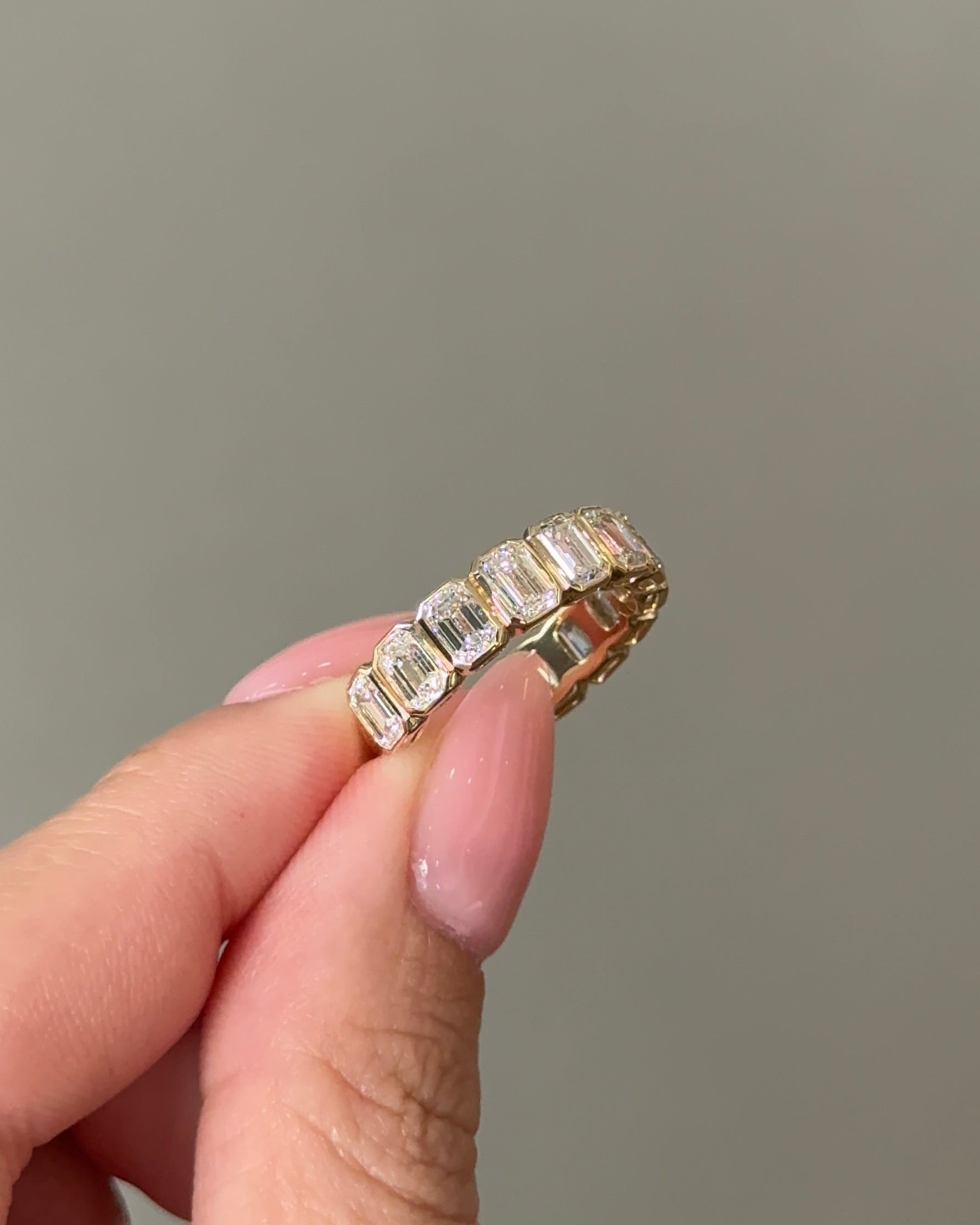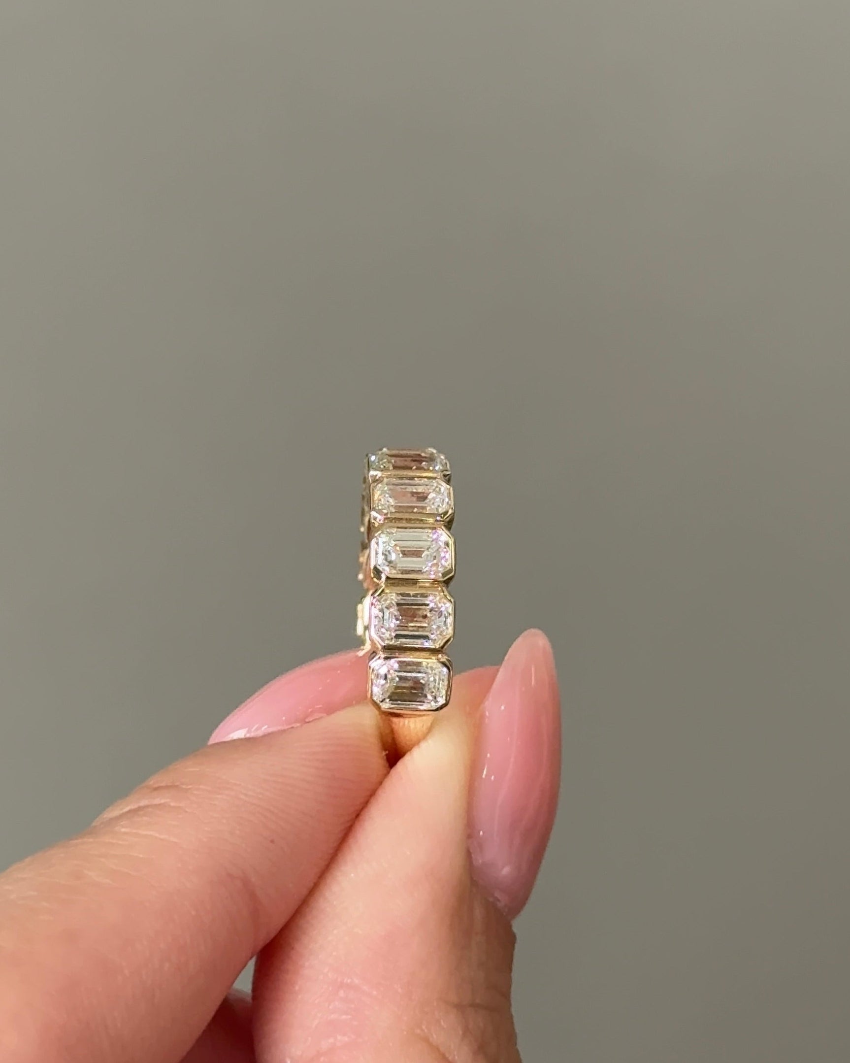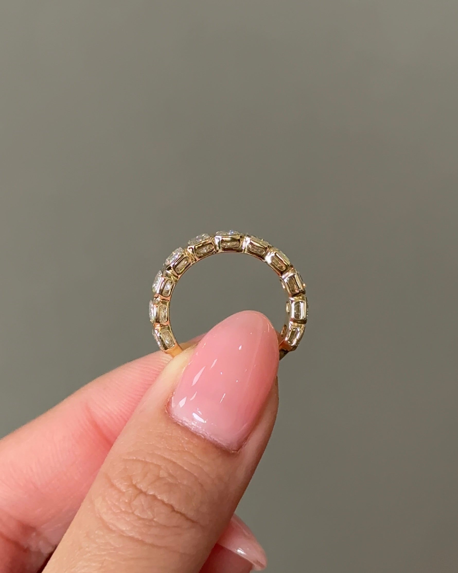 30 Pointer Emerald Cut Diamond Bezel Half Eternity Ring