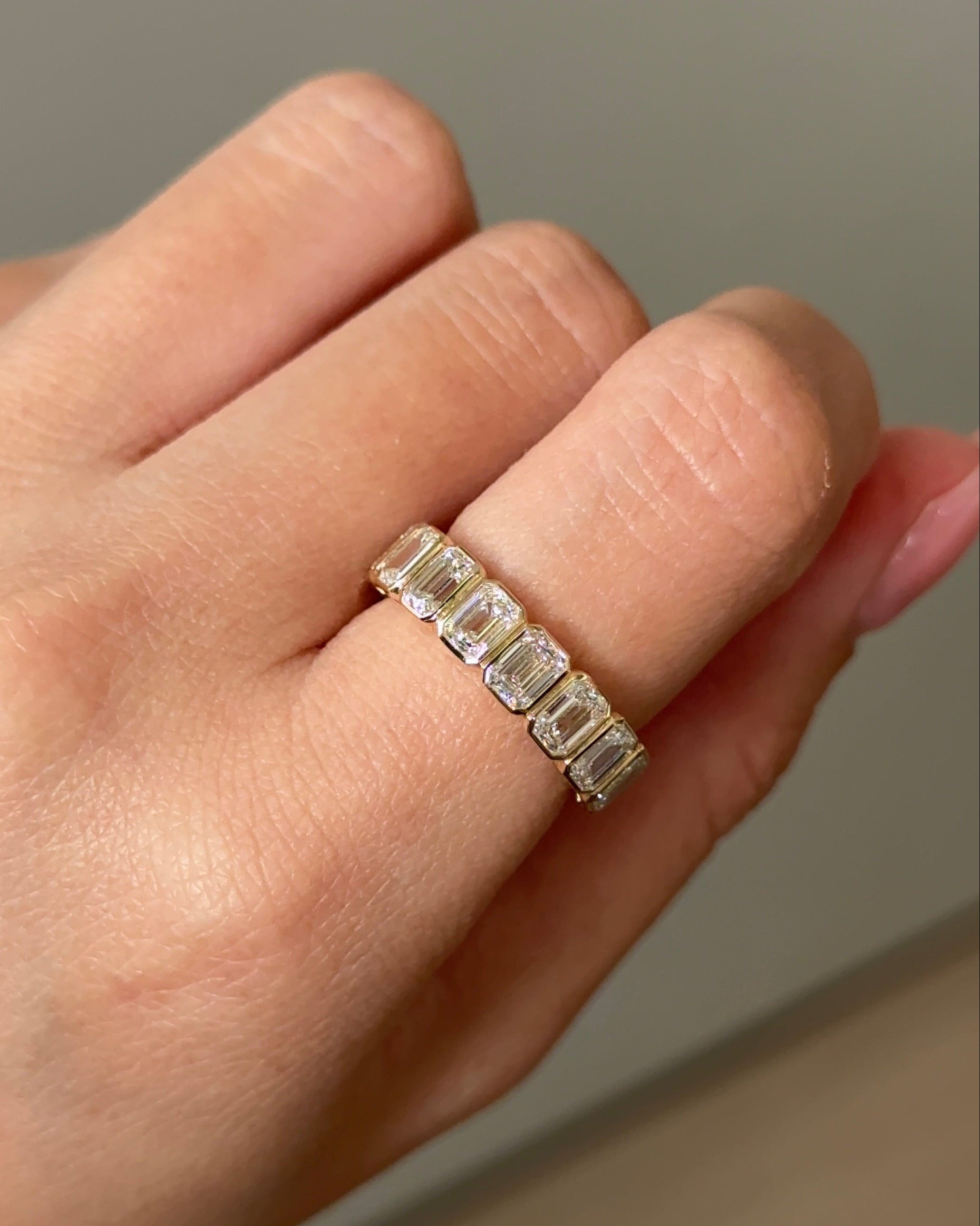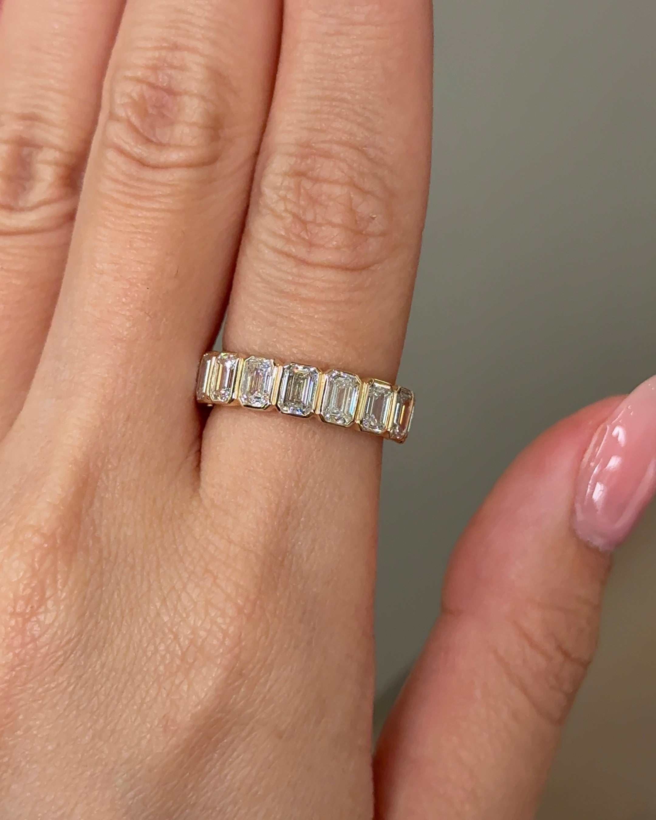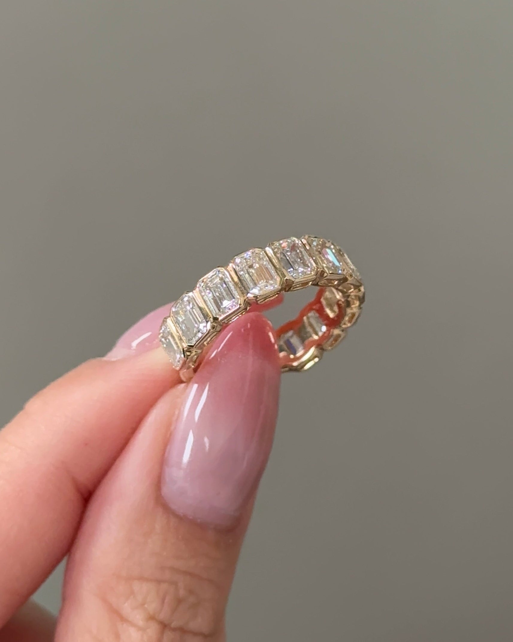 30 Pointer Emerald Cut Diamond Bezel Half Eternity Ring